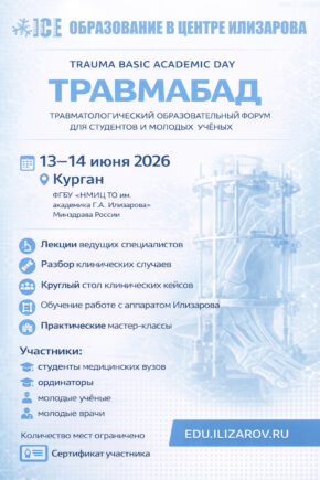 Продолжая работу с сайтом ilizarov.ru, вы даете согласие на автоматизированную обработку ваших данных Федеральным государственным бюджетным учреждением «Национальный медицинский исследовательский центр травматологии и ортопедии имени академика Г.А. Илизарова» Министерства здравоохранения Российской Федерации (файлы cookie, содержащие информацию о ваших прошлых посещениях ilizarov.ru, сайты (запросы), с которых вы перешли на сайт ilizarov.ru, присвоенные идентификаторы (ID), IP-адрес, сведения о местоположении, тип устройства, дата и время сессии, сведения о действиях на сайте), в том числе с использованием метрических программ Яндекс.Метрика, которые могут размещать на вашем устройстве файлы cookie и использовать ваши данные на условиях, определенных операторами таких сервисов.